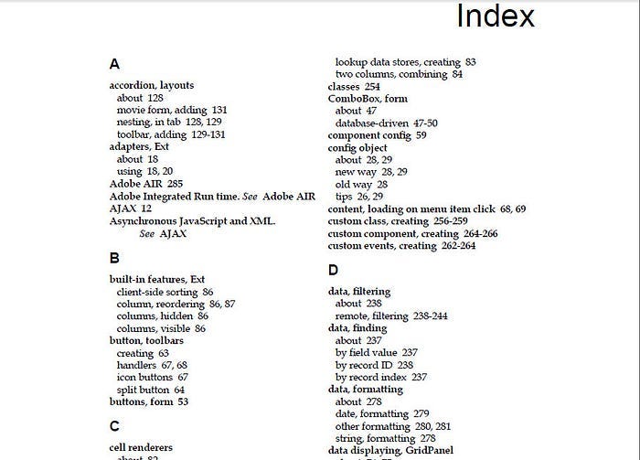 When you encounter thick books that are difficult to read and cause stress, you often find a section called ‘index’ at the back. In this index, each letter shows which page it appears on, allowing you to quickly navigate to the desired page using keywords and easily read the content.