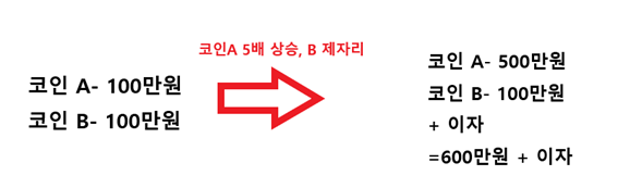 로 계산되게 됩니다. 즉 예치 풀을 이용하지 않고 가만히 코인을 가지고 있었는데 A코인이 5배 상승하고 B코인이 제자리라면 500+100, 내 자산은 600만원의 가치를 가지고 있겠지만, 페어 풀에 넣게 됨으로써 내 자산은 450만원+ 이자가 되는 사태가 벌어지게 되며, 이 경우 사실상 이자가 150만원 이하라면 가만히 들고 있는 것 보다 예치를 하고 나서 얻는게 오히려 손해인 황당한(?) 경우가 발생하게 됩니다.