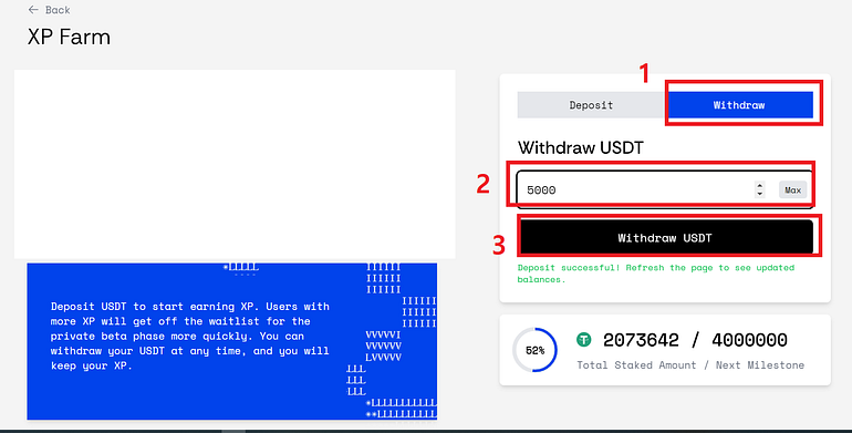 1.똑같은 페이지에서 Withdraw 클릭, 금액 입력, 그리고 Withdraw USDT 클릭