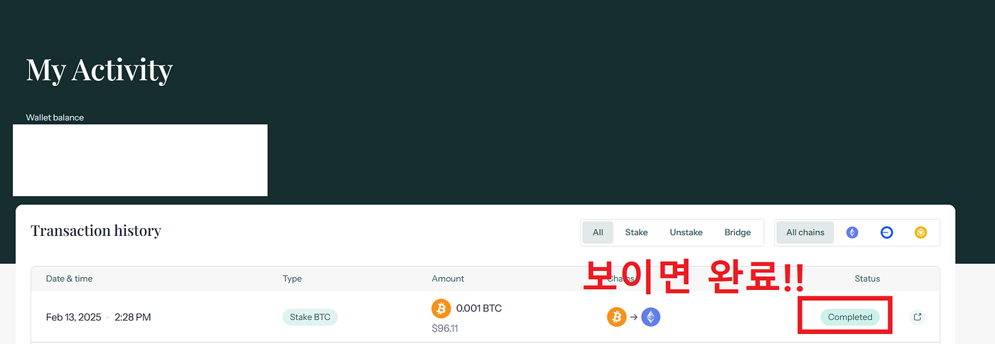 ※1BTC를 예치하셧으면 통상 0.995 정도로 표기가 됩니다. 이는 LBTCV 1= 1BTC정도의 비율이기 때문입니다. 수량이 줄어든게 아니니 걱정하지마세요!