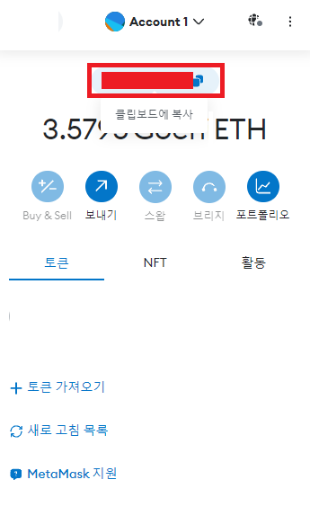 3. 메타마스크 지갑을 열고 자신의 주소를 복사