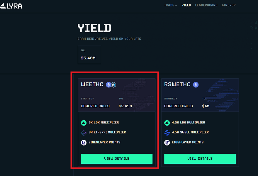 “예치하면서 Lyra쪽에서 자산을 통해서 실행하는 Covered Call로 발생하는 이자 (통상 10%~50% APR, 대 상승장에는 사실상 10%에 가깝고 하락장 혹은 횡보장에는 50%까지 올라감)를 이더리움 or USDC를 지급 받을 수 있음!”