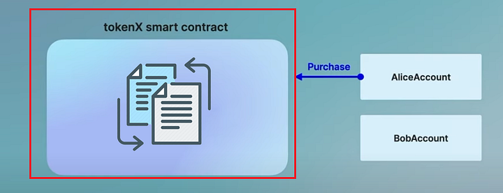 쉽게 이야기해서 토큰을 발행하는 것은 토큰X의 스마트컨트랙과 상호작용을 하지만, 발행된 이후는 자산이 오브젝트 형태의 데이터로 Alice의 계정으로 전송되게 되고, 이후 Alice가 X토큰을 Bob에게 보내고 싶다면 스마트컨트랙과 상호작용을 할 필요가 없이 두 계정이 직접적으로 바로 거래가 가능하다.
